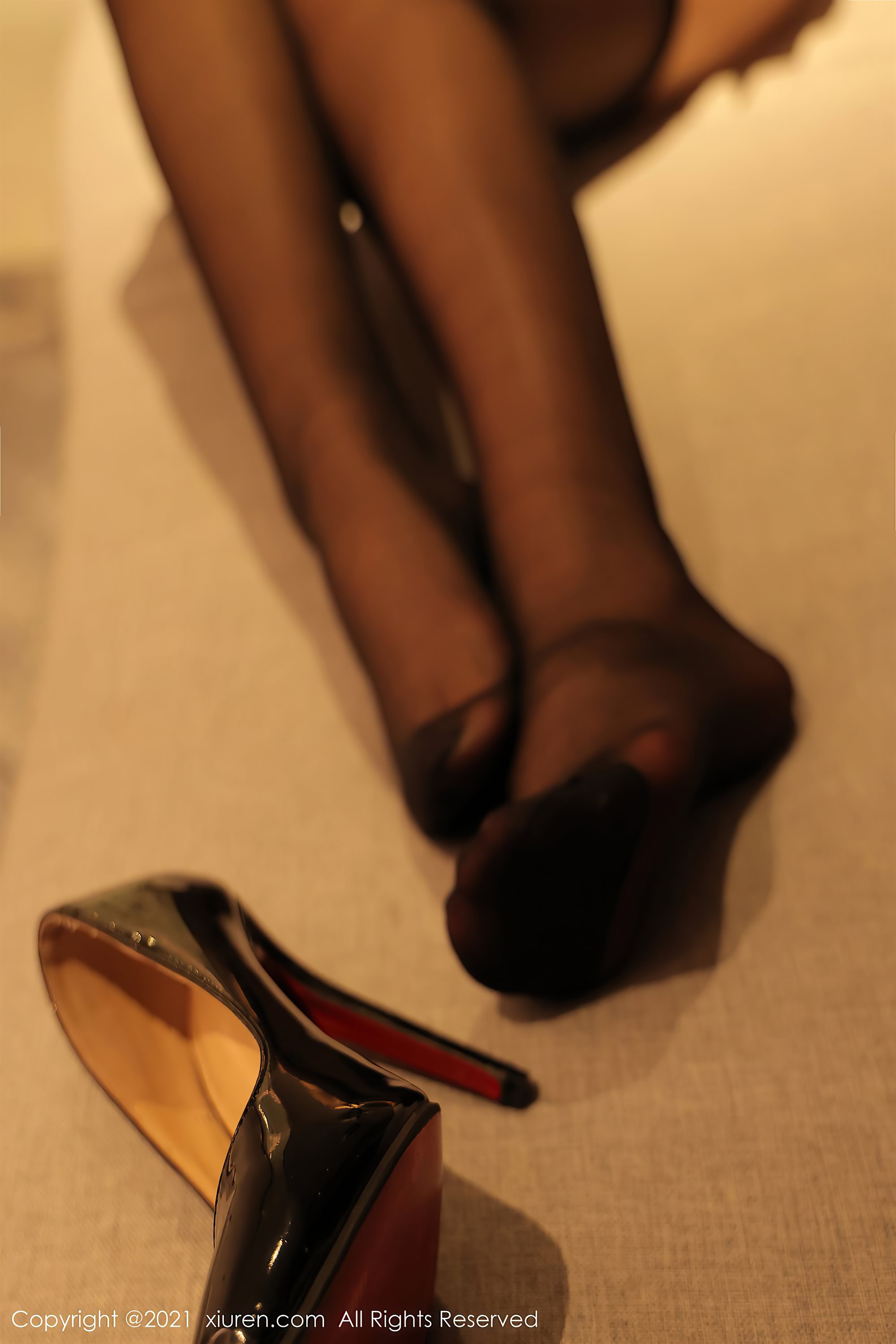 [XiuRen] No.4406 美七Mia calcinha de renda de seda preta salto alto